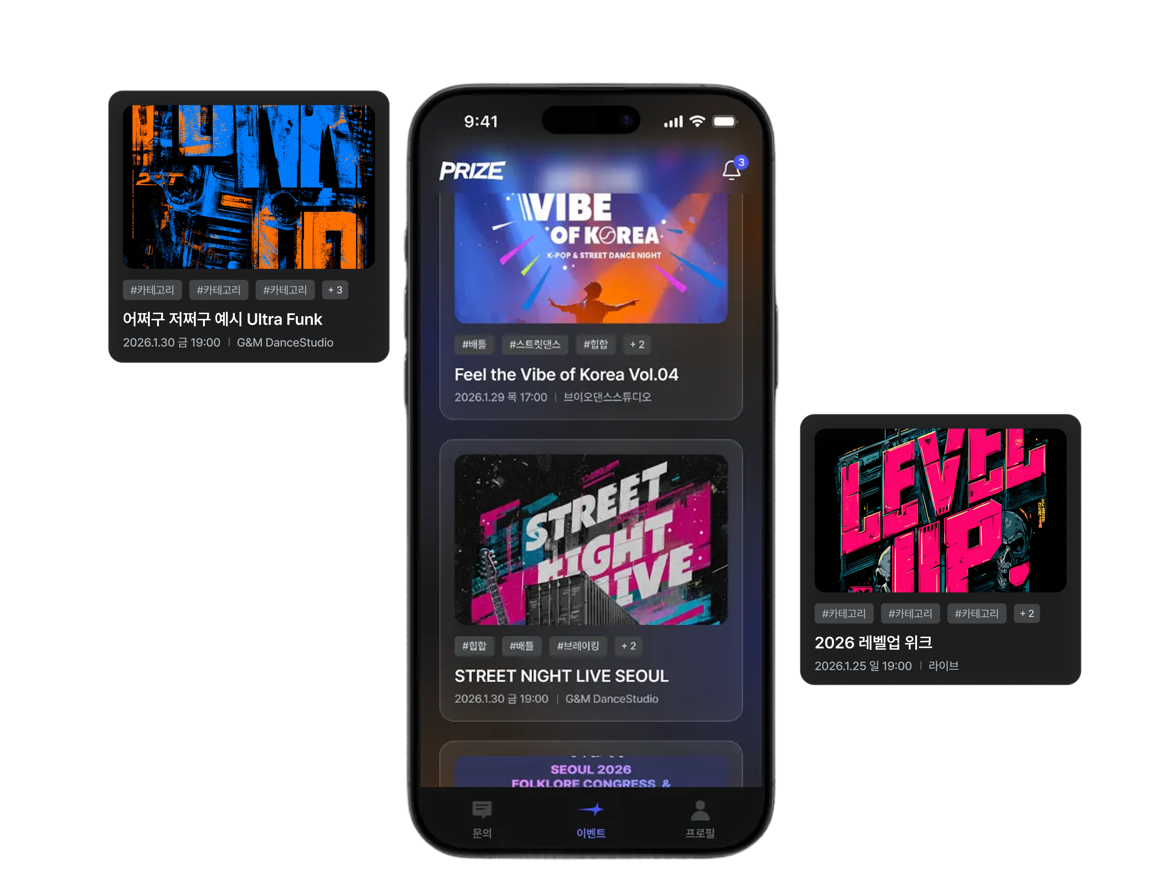 대회를 한눈에 확인하고 내가 서고 싶은 무대를 직접 선택할 수 있습니다.